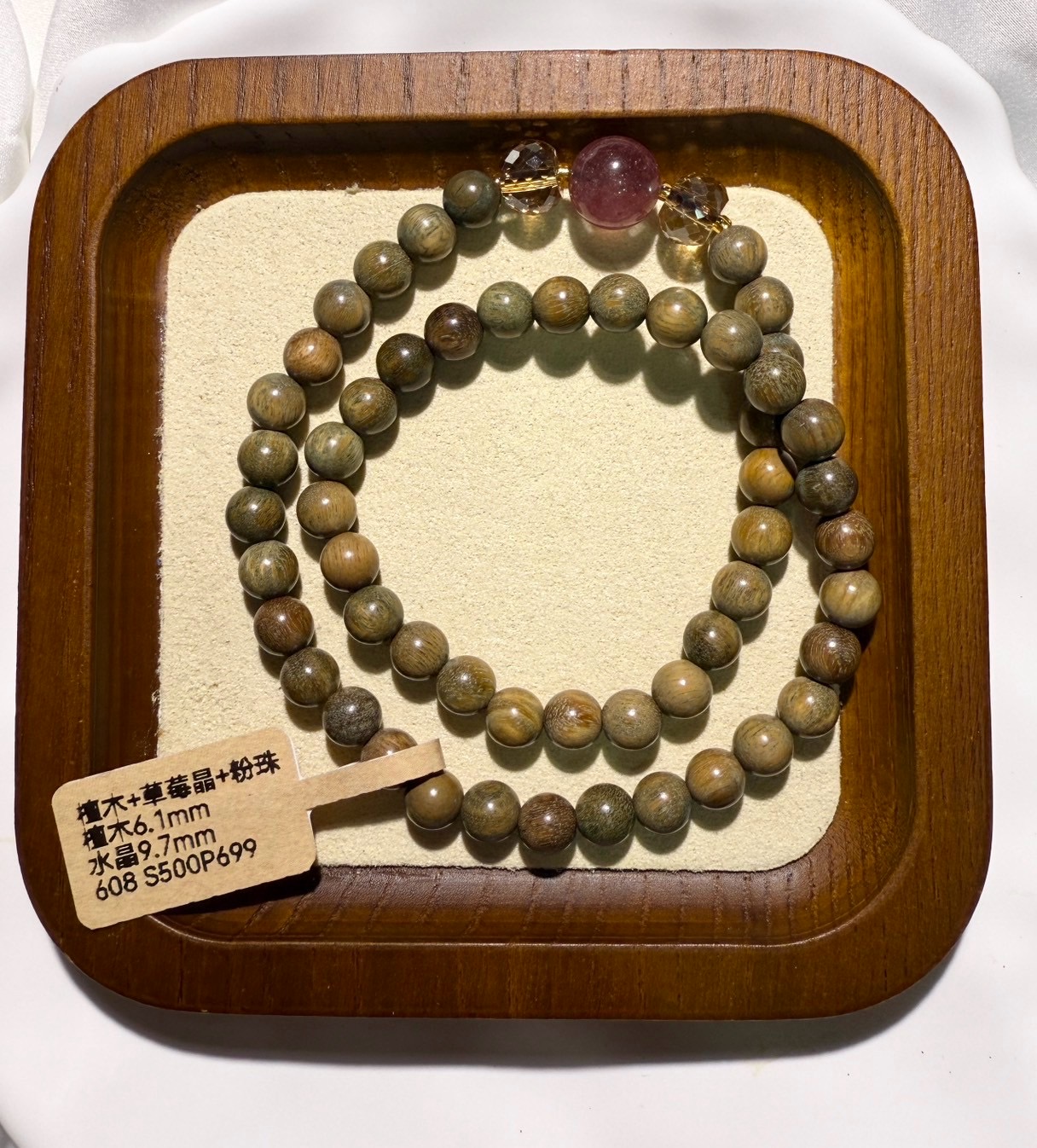608檀木+草莓晶+粉珠 數量